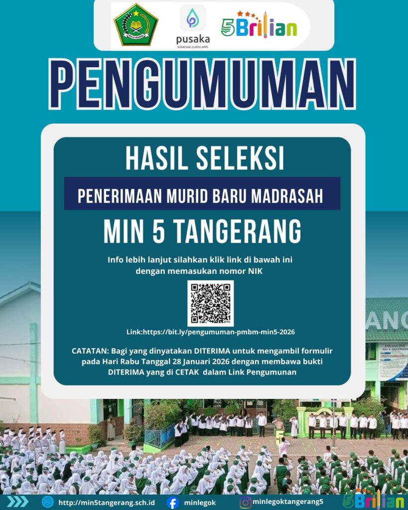 Untuk yg *DITERIMA* : kami ucapkan selamat bergabung dengan kami MIN 5 Tangerang. Mari ciptakan kenangan indah bersama.